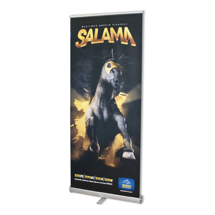 Suosittu rollup -runko huippulaadukkaalla kuvalla ja tyylikkäällä muotoilulla on osoittanut luotettavuutensa jo tuhansissa tapahtumissa. Teleskooppivarren avulla voit säädellä halutessasi kuvan korkeutta. Pystytys käy helposti ja nopeasti 30 sekunnissa!